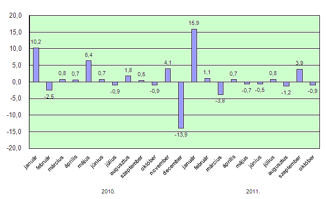 Az előző év azonos időszakához képest a volumen azonban 3 százalékkal növekedett, ez a szeptemberivel megegyező mértéket jelent. Az összetételét tekintve nem okoz nagy meglepetést, hogy a termelés bővüléséhez elsősorban a járműgyártás eladásainak növekedése, valamint a gépek, gépi berendezések gyártásának jó teljesítménye járult hozzá - mindezt korábbi ipari, külkereskedelmi adatok is megerősítették, továbbá a beruházási adatok is ezekben az ágazatokban erős. Az előző hónapokhoz hasonlóan tovább folytatódott a híradás-technikai berendezések és az elektronikus fogyasztási cikkek iránti kereslet csökkenése.