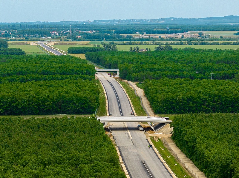 - a Pápa és Tét-dél csomópont közötti 18,4 kilométeren 15 műtárgy és két külön szintű csomópont, valamint egy vasúti felüljáró épül a pápai repülőteret bekötő úton. A szakasz kivitelezője a Duna Aszfalt Zrt., az EuroAszfalt Kft. alvállalkozóként vesz részt a munkában.