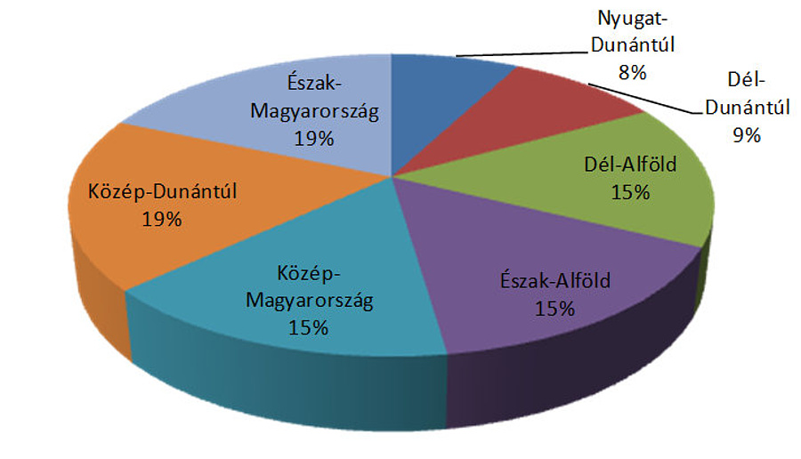 Amennyiben a befektetések területi elosztását nézzük, úgy azt látjuk, hogy egyik magyarországi régió sem emelkedik ki jelentősen a többi közül, egy-egy régió átlagosan az összes forrás 15-18 százalékát tudja magához vonzani. Az NFÜ adatai szerint azonban kis előnye van a többiekkel szemben az Észak-Magyarországon és a Közép-Dunántúlon székelő cégeknek, míg Nyugat-, illetve Dél-Dunántúlon némileg kevesebb projekt valósult meg.
