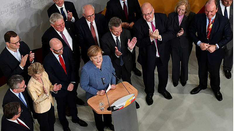 Az Angela Merkel kancellár vezette CDU/CSU jobbközép pártszövetségtől jobbra álló, bevándorlás- és iszlámellenes AfD a szavazatok 12,6 százalékával kerülhet be a Bundestagba.
