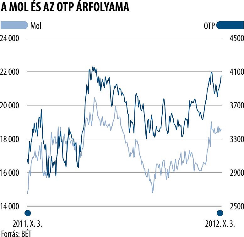Az év végi célárak alapján is viszonylag kevés felértékelődési potenciált látnak, a vizsgálatban részt vevő elemzők célárainak átlaga ugyanis 4200 forint, ami alig öt százalékkal haladja meg a jelenlegi tőzsdei kurzust − igaz, a hátralévő három hónapra ez is szép évesített hozamot jelent. A Mol esetében kicsit többen buzdítanak vételre, annak ellenére, hogy az olajcég nyereségmutatói és előre jelzett növekedési üteme elmarad az OTP-étől. A papírról nyilatkozó húsz elemző közül öten vételt javasolnak, három szerint felülteljesítő lesz a papír, 11-en a részvények tartását tanácsolják, s csak egy szakember szerint lesz alulteljesítő a Mol. A cégtől az idén valamivel kétezer forint fölötti részvényenkénti eredményre számítanak, a tegnapi tőzsdei árral kalkulálva ez 8,98-as P/E mutatót ad. Összehasonlításként: az osztrák OMV 6,4-es, az elemzők szerint is rettentően túlértékelt lengyel a PKN pedig 11,5-ös ár/nyereség hányadossal forog. A szakemberek előrejelzése szerint a Mol-profit a következő három év során évente tíz százalék körüli mértékben növekszik majd a 2015-ös részvényenkénti 2672 forintig. A Reuters konszenzusához adatot szolgáltató elemzők év végi célárainak átlaga 19 900 forint, tehát alig valamivel több mint ötszázaléknyi felértékelődésre számítanak itt is − ez pedig belül van a hibahatáron.